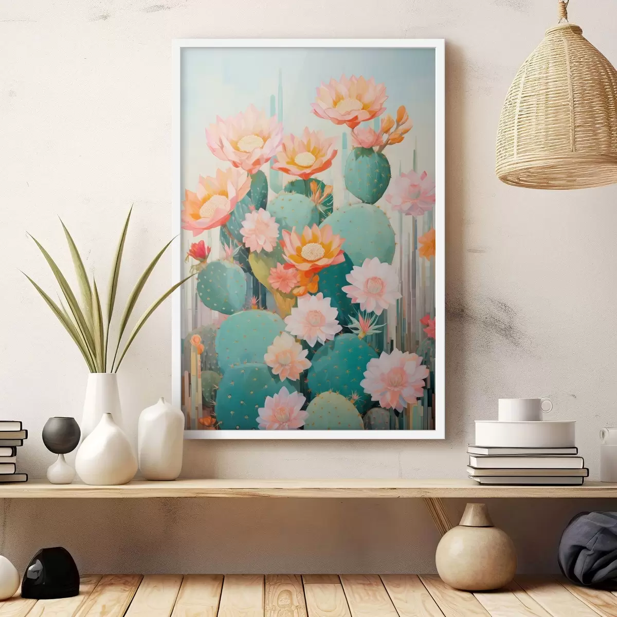 Plakat Kaktuste lilleaed pehmes pastelltoonides illustratsioonistiilis f46935