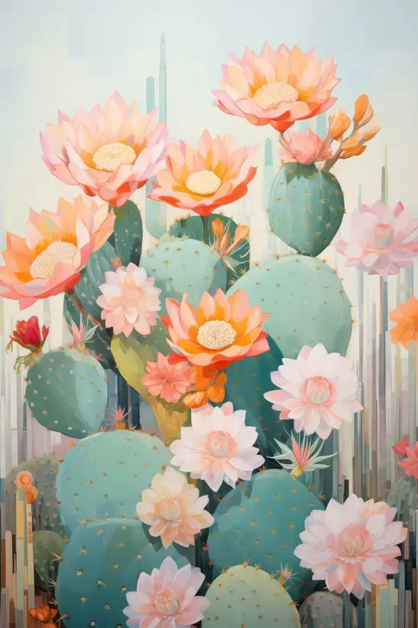 Plakat Kaktuste lilleaed pehmes pastelltoonides illustratsioonistiilis f46935