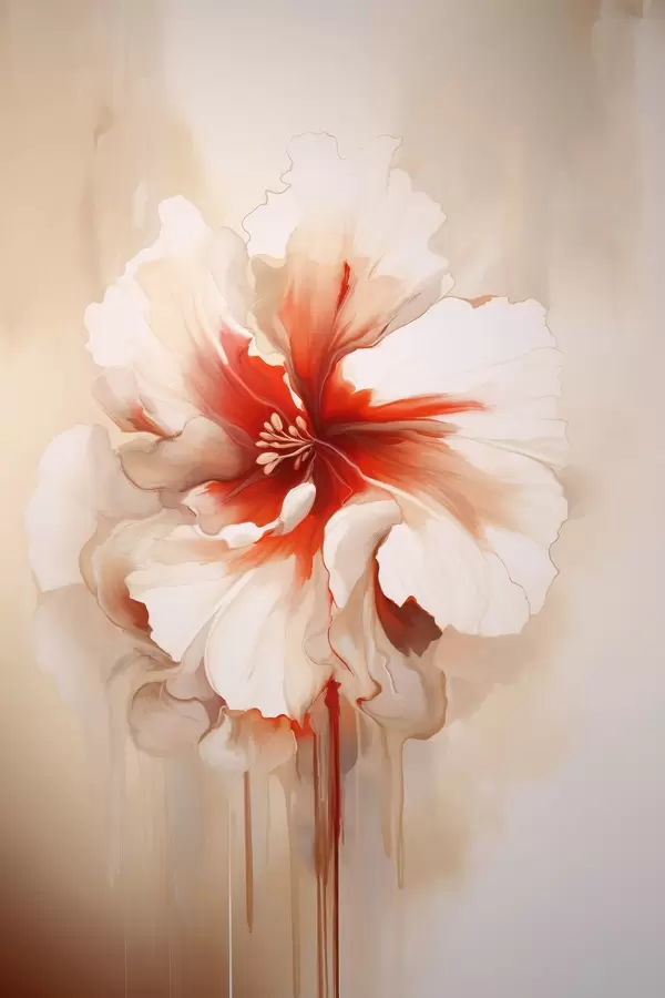 Poster Valge ja punane õis pooleldi läbipaistvate kroonlehtede ja voolavate värvitilkadega Nr f46940