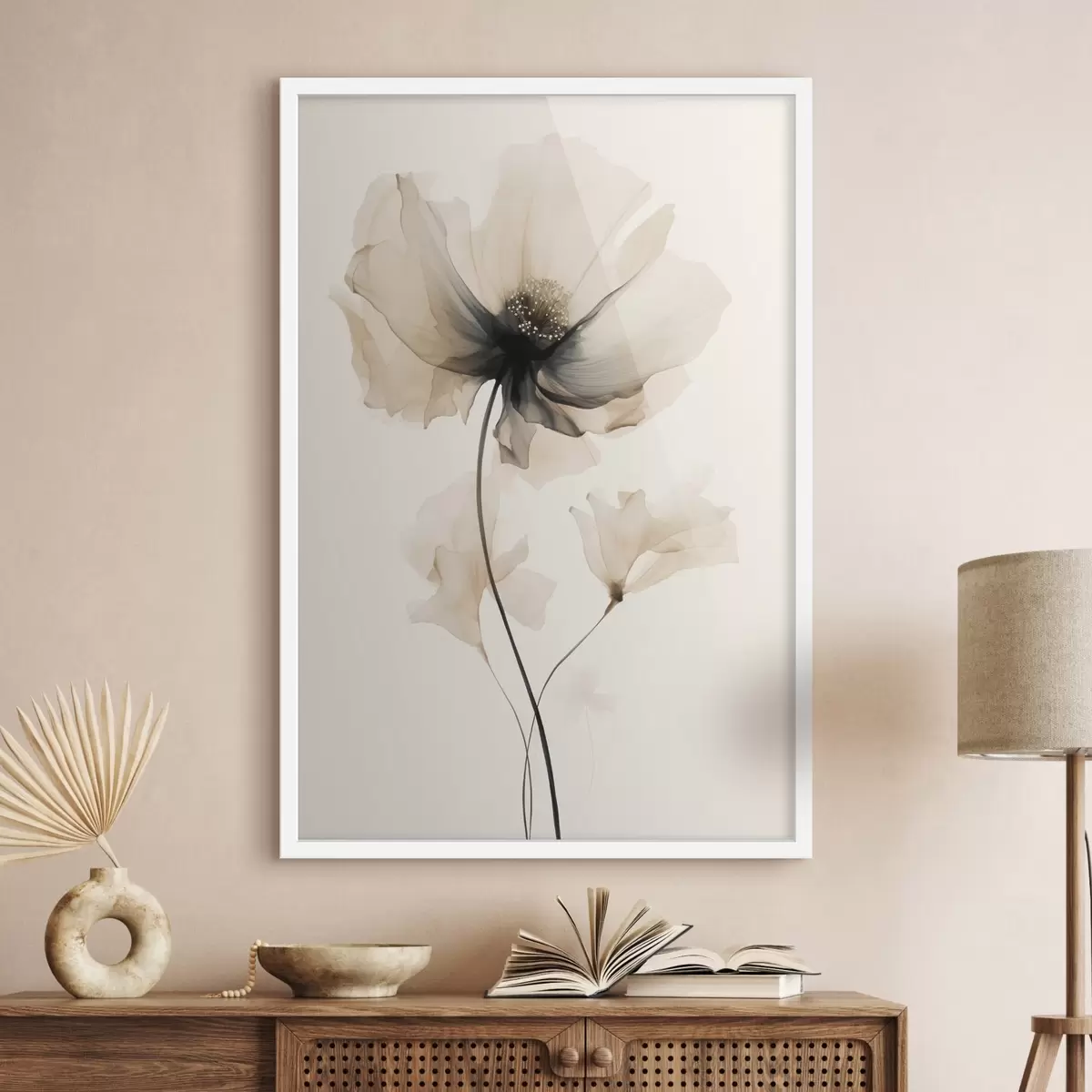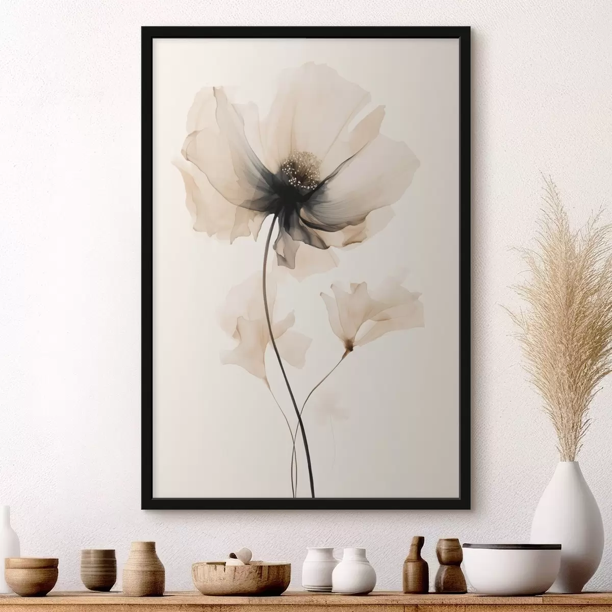 Plakat Delikaatne poolläbipaistev lill tumeda keskosaga minimalistlikus stiilis f46944