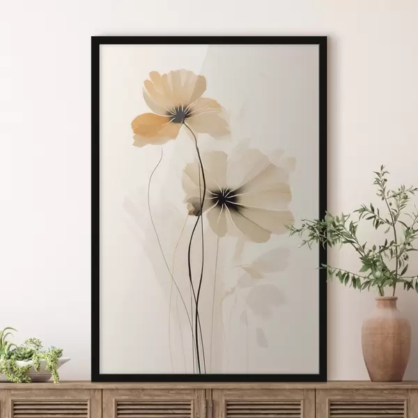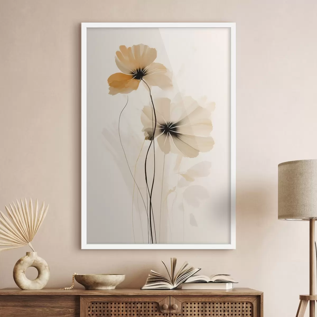 Poster Beige-virsiku värvipaleti lilled tumeda keskosaga minimalistlikus stiilis Nr f46945