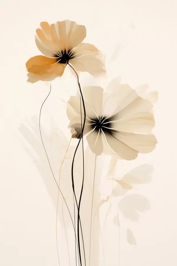 Poster Beige-virsiku värvipaleti lilled tumeda keskosaga minimalistlikus stiilis Nr f46945