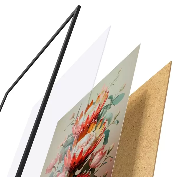 Plakat koosneb raamist, pleksiklaasist, trükitud pildist ja puitlaastplaadist alusplaadist. Tänu tagaküljel olevatele kinnitustele saab plakati kohe seinale riputada.