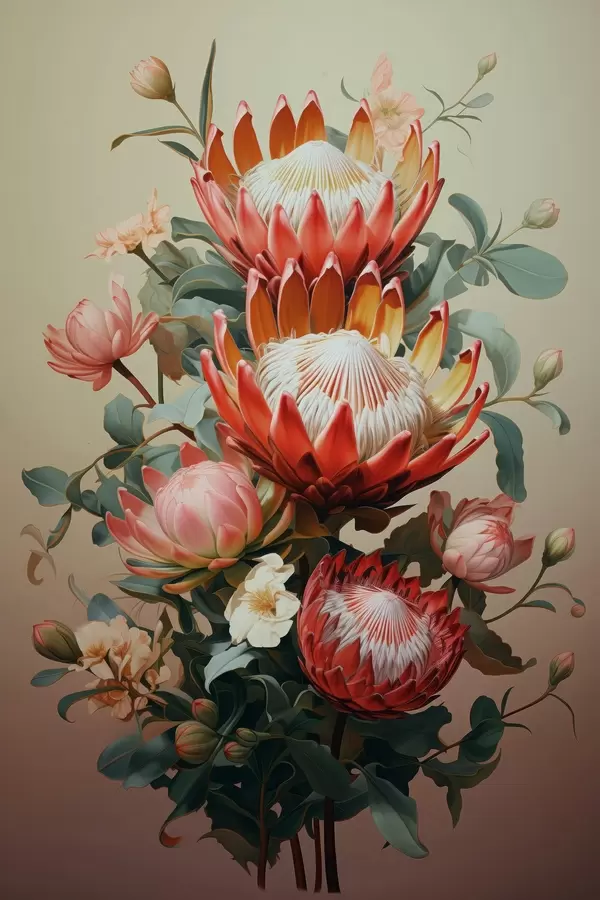 Poster Kompositsioon suurte proteadega kaasaegses digitaalses maalilises illustratsioonistiilis Nr f46947