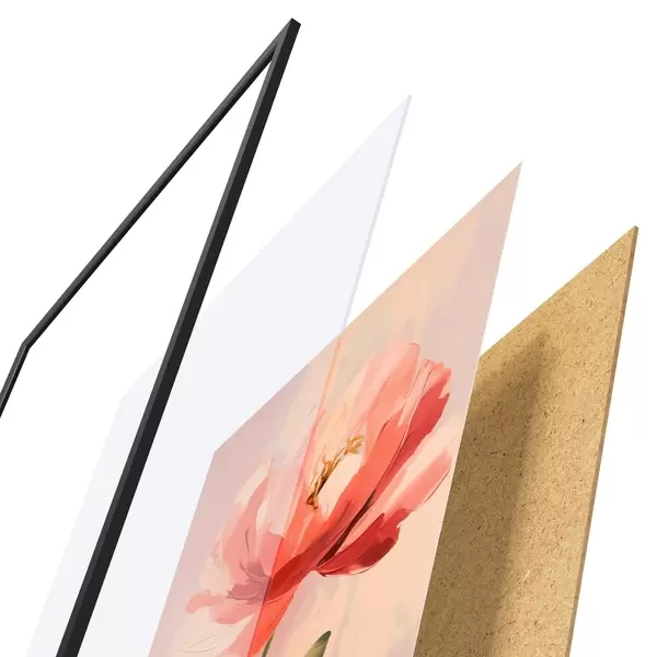 Plakat koosneb raamist, pleksiklaasist, trükitud pildist ja puitlaastplaadist alusplaadist. Tänu tagaküljel olevatele kinnitustele saab plakati kohe seinale riputada.