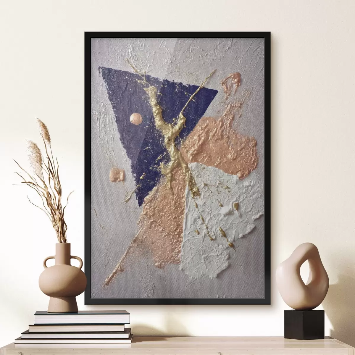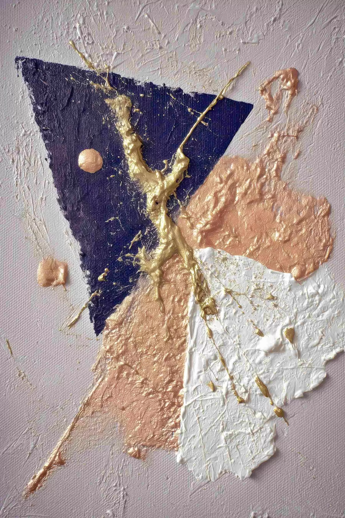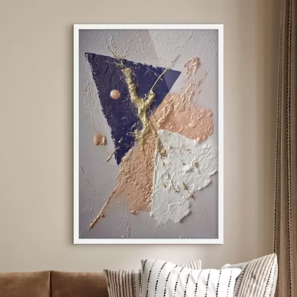 Plakat Abstraktne kompositsioon tumesinise kolmnurga ja reljeefsete pintslitõmmetega õlimaalistiilis f46953