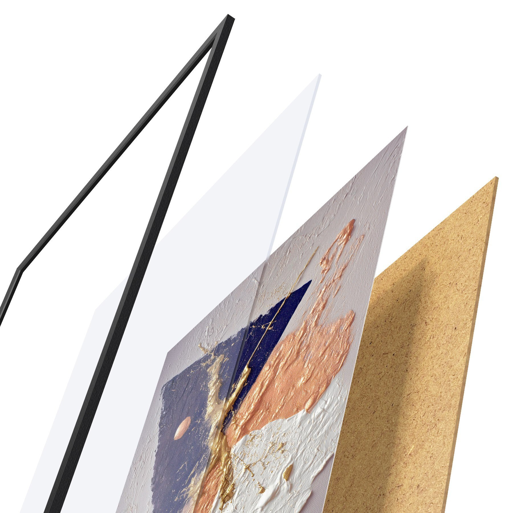 Poster Abstraktne kompositsioon tumesinise kolmnurga ja reljeefsete pintslitõmmetega õlimaalistiilis Nr f46953