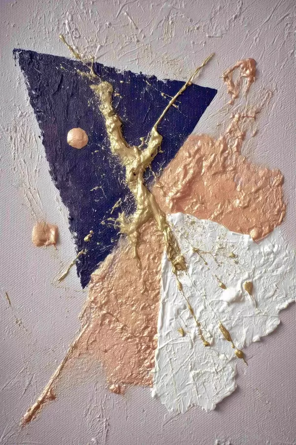 Poster Abstraktne kompositsioon tumesinise kolmnurga ja reljeefsete pintslitõmmetega õlimaalistiilis Nr f46953