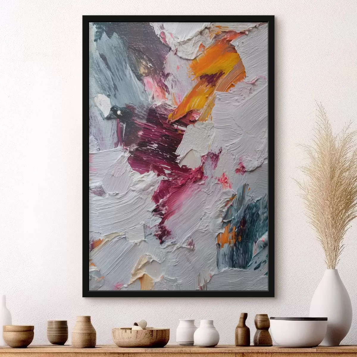 Plakat Abstraktne kompositsioon intensiivsete kirsi- ja apelsinitoonidega õlimaalistiilis f46959