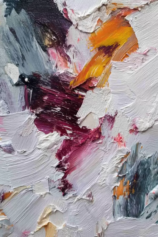Plakat Abstraktne kompositsioon intensiivsete kirsi- ja apelsinitoonidega õlimaalistiilis f46959