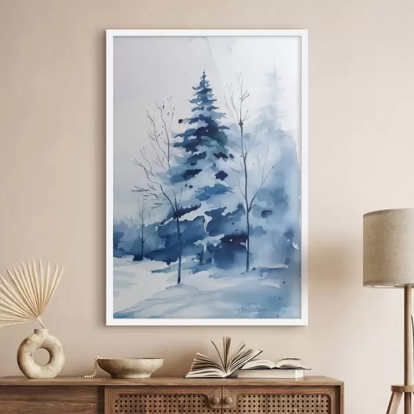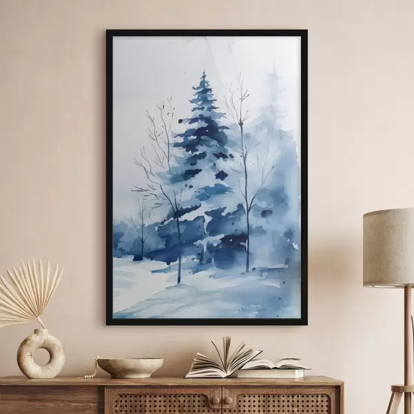 Plakat Talvine mets, kuusk, akvarellimitatsioon f46964
