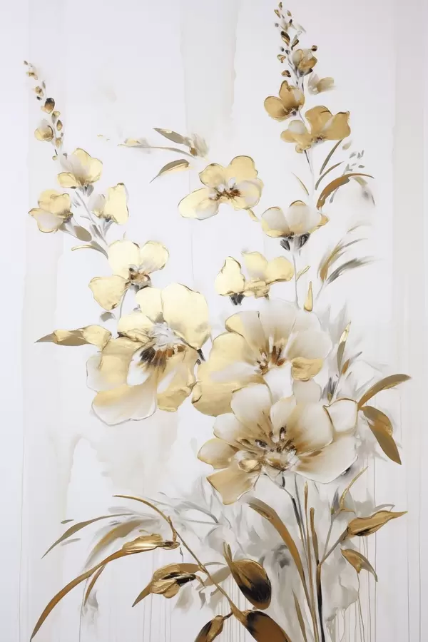 Poster Tekstuuriga kollased õied ja lehed valgel taustal, delikaatsete pintslitõmmetega Nr f47016