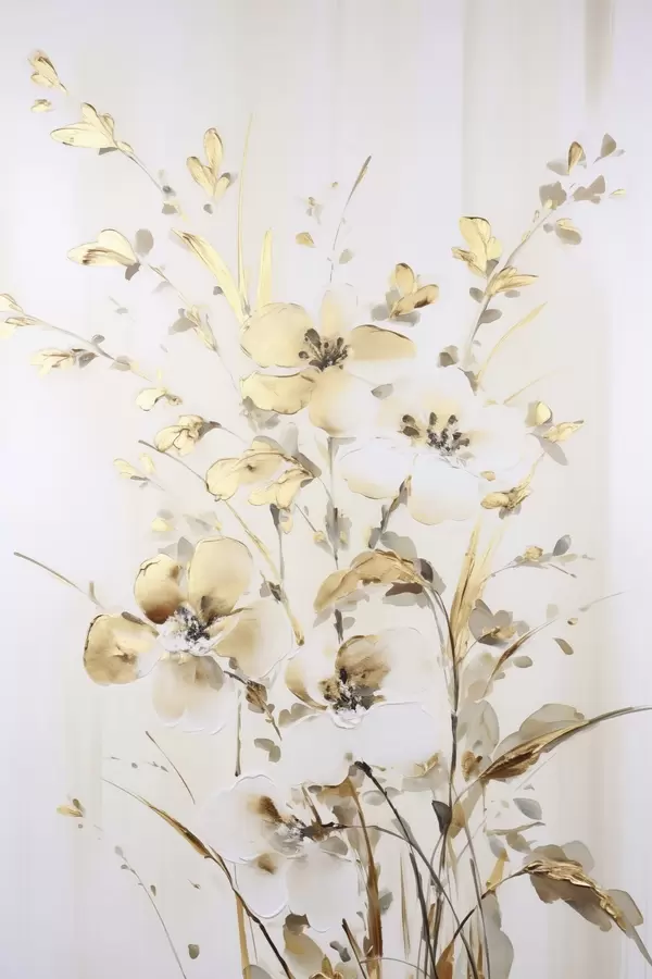 Poster Tekstuuriga kollased õied ja lehed valgel taustal, delikaatsete pintslitõmmetega Nr f47017