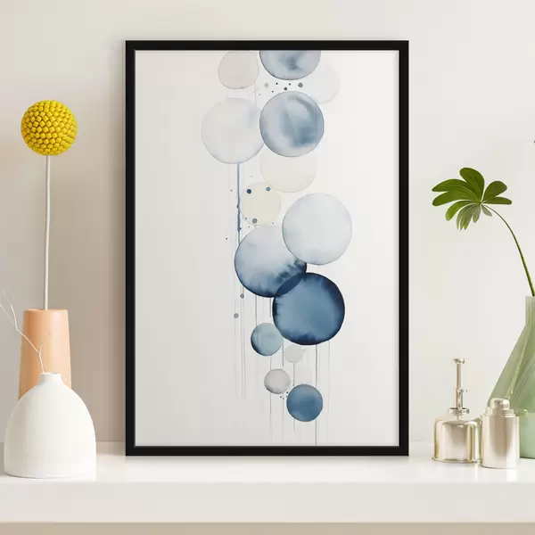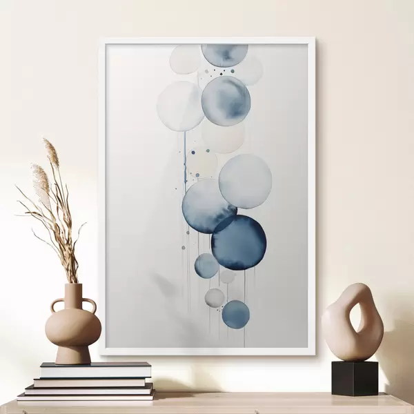 Plakat Abstraktsed tekstuuriga sinised ja valged akvarellringid erinevates suurustes valgel taustal f47020