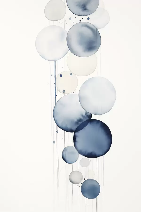 Plakat Abstraktsed tekstuuriga sinised ja valged akvarellringid erinevates suurustes valgel taustal f47020