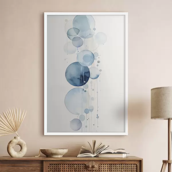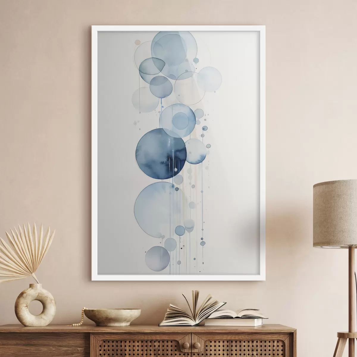 Plakat Abstraktsed tekstuuriga sinised ja valged akvarellringid erinevates suurustes valgel taustal f47021