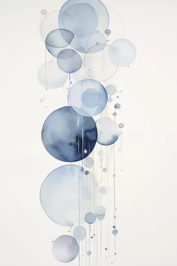 Plakat Abstraktsed tekstuuriga sinised ja valged akvarellringid erinevates suurustes valgel taustal f47021