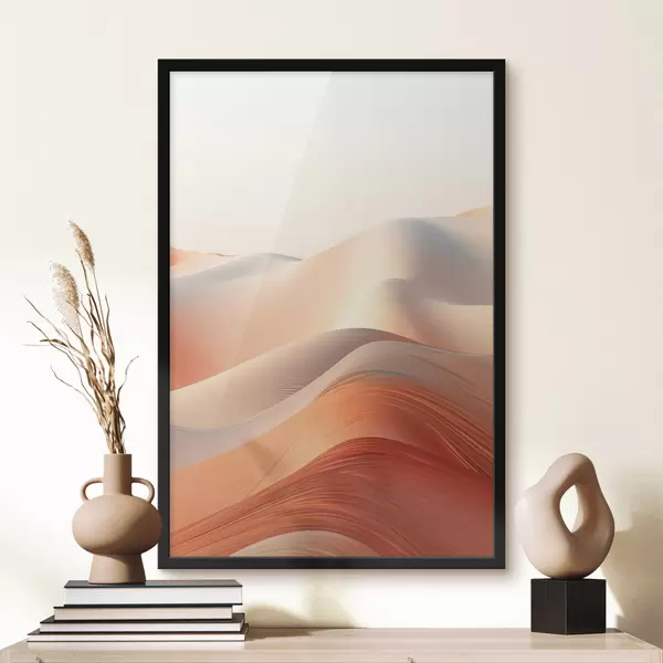 Plakat Abstraktne kõrbe maastik voolavate liivaluidetega soojades oranžides ja valgetes toonides f47031
