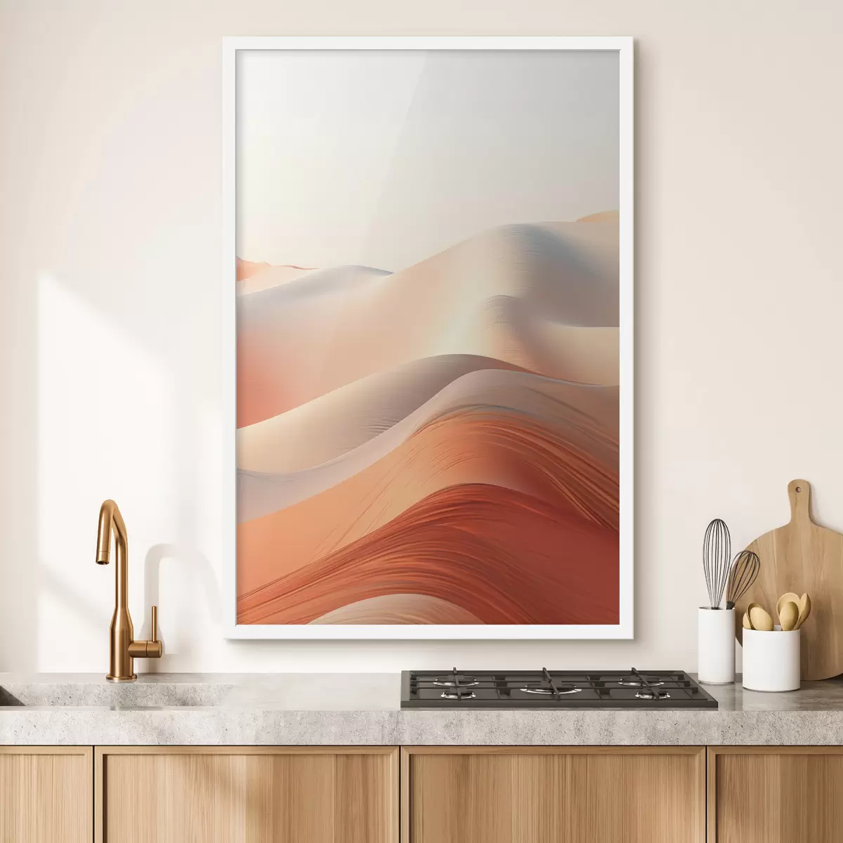Poster Abstraktne kõrbe maastik voolavate liivaluidetega soojades oranžides ja valgetes toonides Nr f47031
