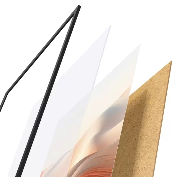 Plakat koosneb raamist, pleksiklaasist, trükitud pildist ja puitlaastplaadist alusplaadist. Tänu tagaküljel olevatele kinnitustele saab plakati kohe seinale riputada.