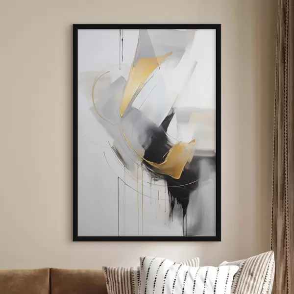 Plakat Abstraktne maal kollaste, mustade ja valgetega pintslitõmmetega, dünaamilised jooned f47034