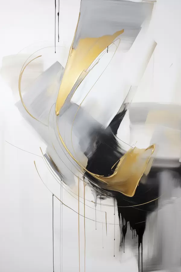 Plakat Abstraktne maal kollaste, mustade ja valgetega pintslitõmmetega, dünaamilised jooned f47034