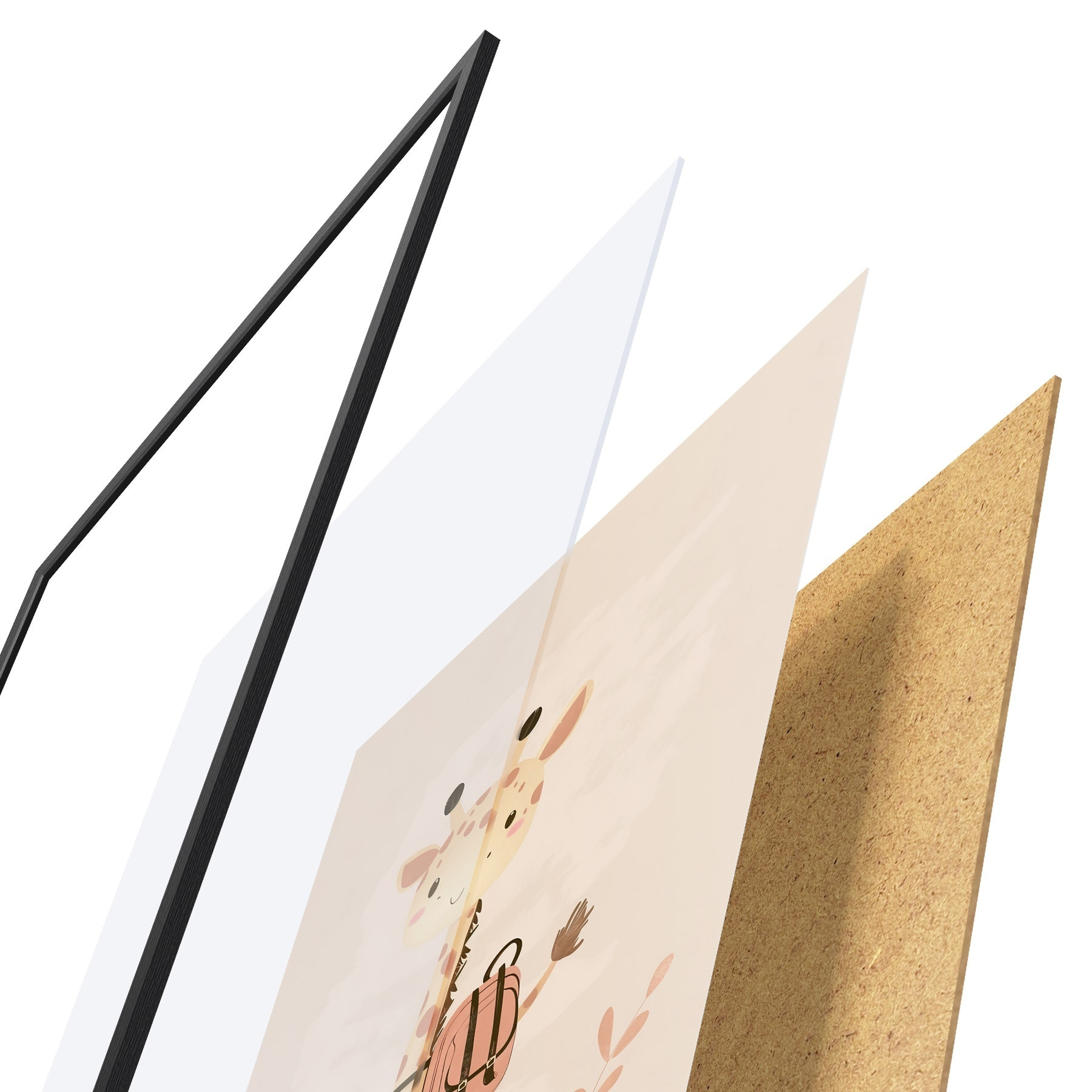 Plakat koosneb raamist, pleksiklaasist, trükitud pildist ja puitlaastplaadist alusplaadist. Tänu tagaküljel olevatele kinnitustele saab plakati kohe seinale riputada.