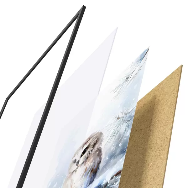 Plakat koosneb raamist, pleksiklaasist, trükitud pildist ja puitlaastplaadist alusplaadist. Tänu tagaküljel olevatele kinnitustele saab plakati kohe seinale riputada.
