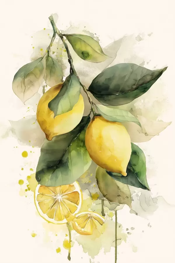 Poster vesivärvistiilis oks koos sidrunitega Nr f47123