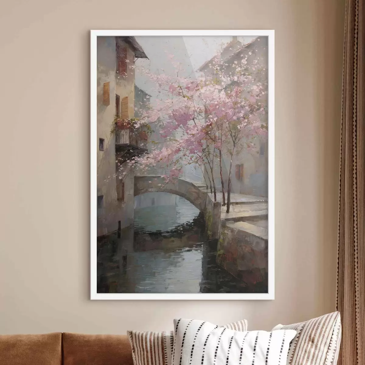 Poster romantiline linnamaastik õitsva puuga õlimaalistiilis Nr f47127