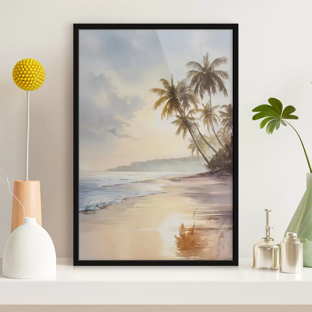 Plakat akvarellistiilis saare päikeseloojangurand f47135