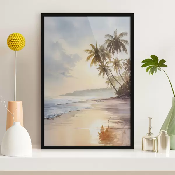 Poster akvarellistiilis saare päikeseloojangurand Nr f47135