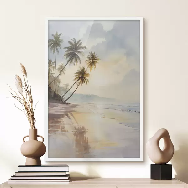 Poster akvarellistiilis saare päikeseloojangurand Nr f47136