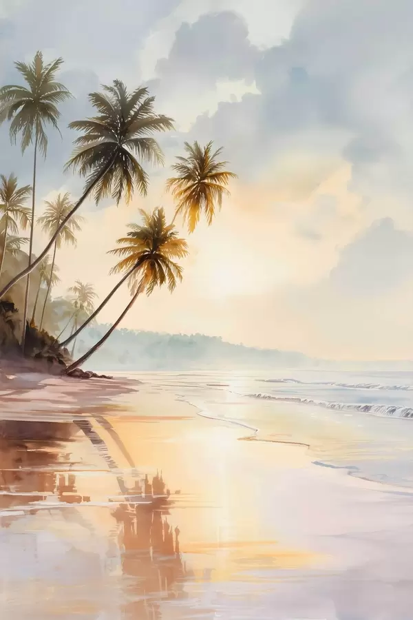Poster akvarellistiilis saare päikeseloojangurand Nr f47136