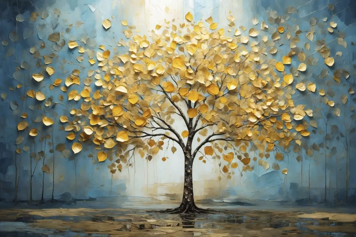 Poster Kollaste lehtedega puu sinise taustaga Nr f47256