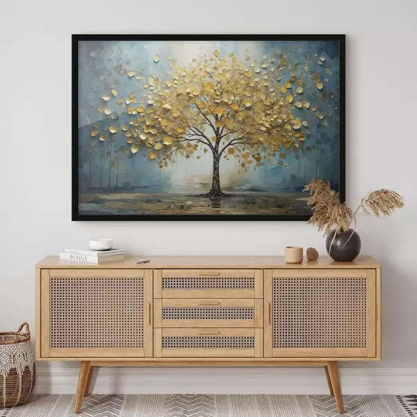 Plakat Kollaste lehtedega puu sinise taustaga f47256