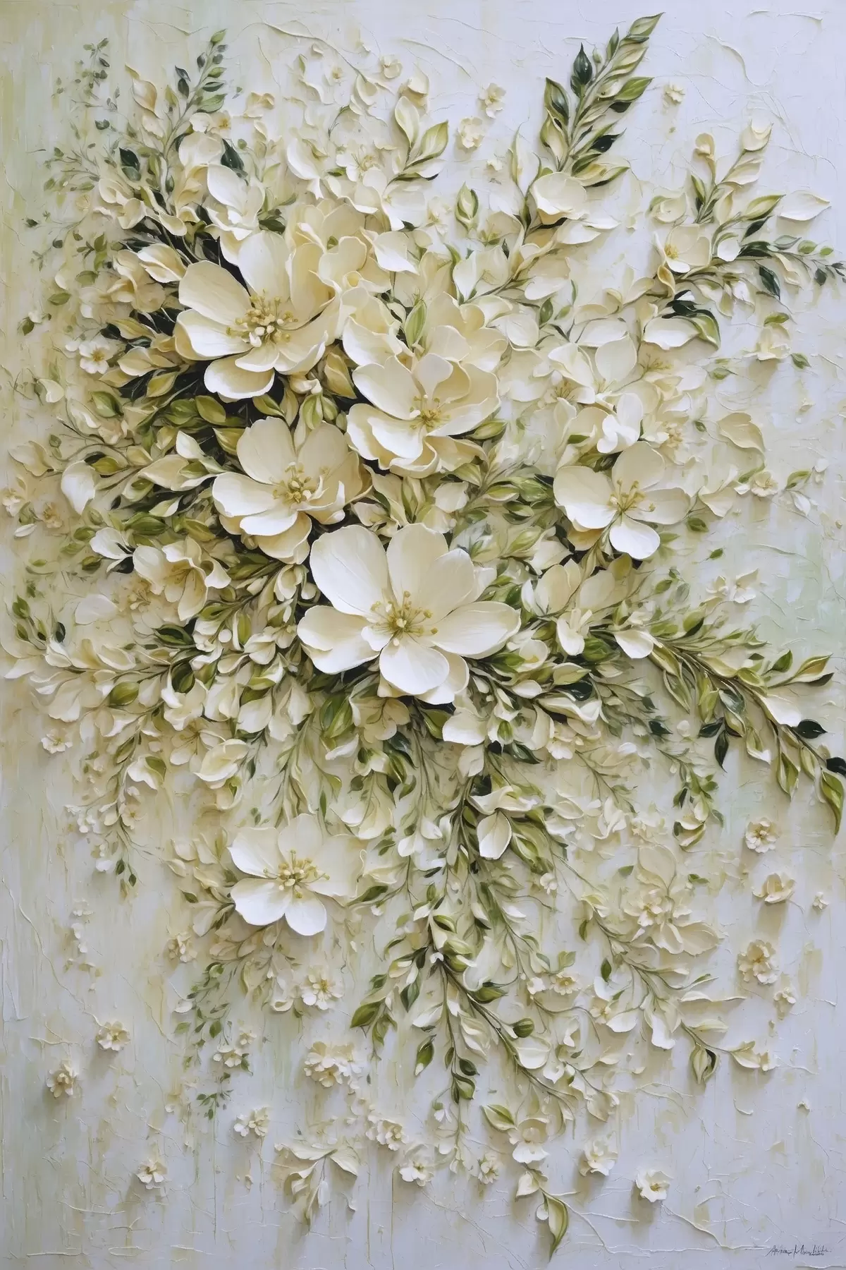 Plakat Suur kompositsioon kreemikast lilledest ja lehtedest f47267