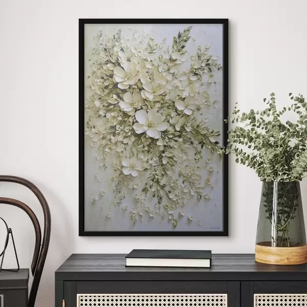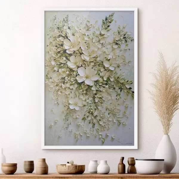 Poster Suur kompositsioon kreemikast lilledest ja lehtedest Nr f47267