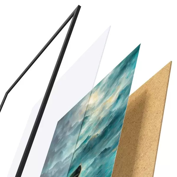 Plakat koosneb raamist, pleksiklaasist, trükitud pildist ja puitlaastplaadist alusplaadist. Tänu tagaküljel olevatele kinnitustele saab plakati kohe seinale riputada.