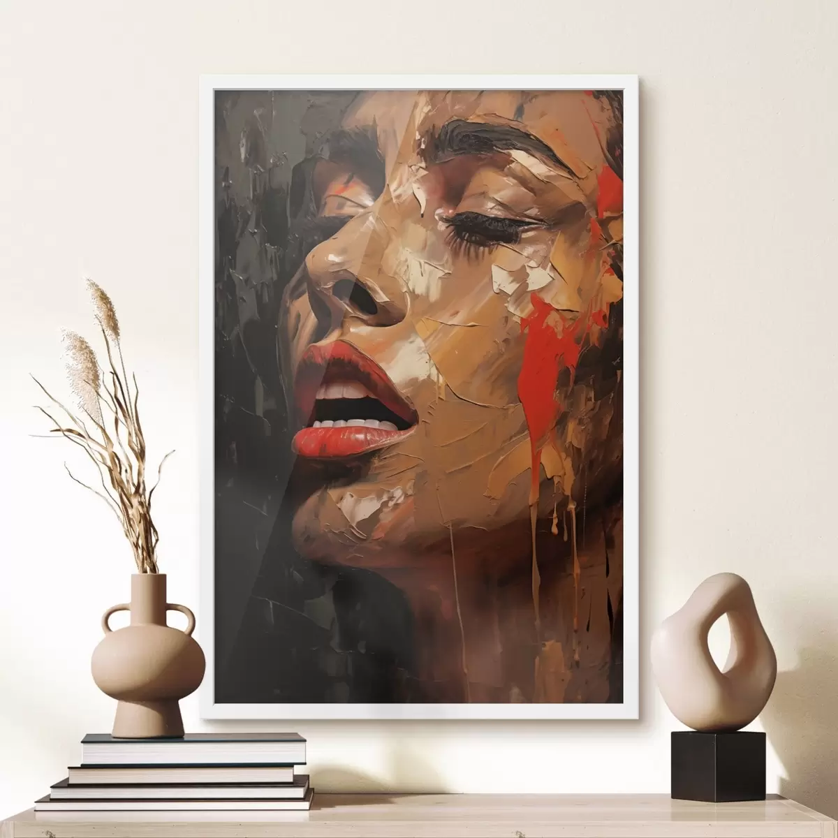 Poster Naise portree soojade pintslitõmmetega ja punastes toonides Nr f47294