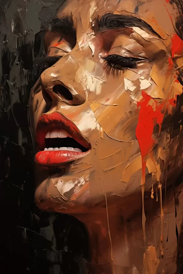 Plakat Naise portree soojade pintslitõmmetega ja punastes toonides f47294