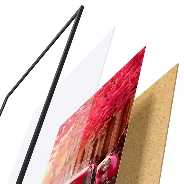 Plakat koosneb raamist, pleksiklaasist, trükitud pildist ja puitlaastplaadist alusplaadist. Tänu tagaküljel olevatele kinnitustele saab plakati kohe seinale riputada.