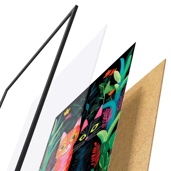 Plakat koosneb raamist, pleksiklaasist, trükitud pildist ja puitlaastplaadist alusplaadist. Tänu tagaküljel olevatele kinnitustele saab plakati kohe seinale riputada.