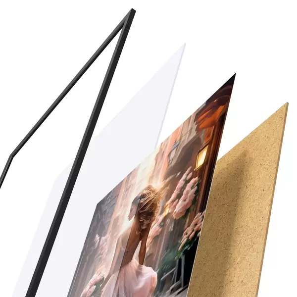 Plakat koosneb raamist, pleksiklaasist, trükitud pildist ja puitlaastplaadist alusplaadist. Tänu tagaküljel olevatele kinnitustele saab plakati kohe seinale riputada.