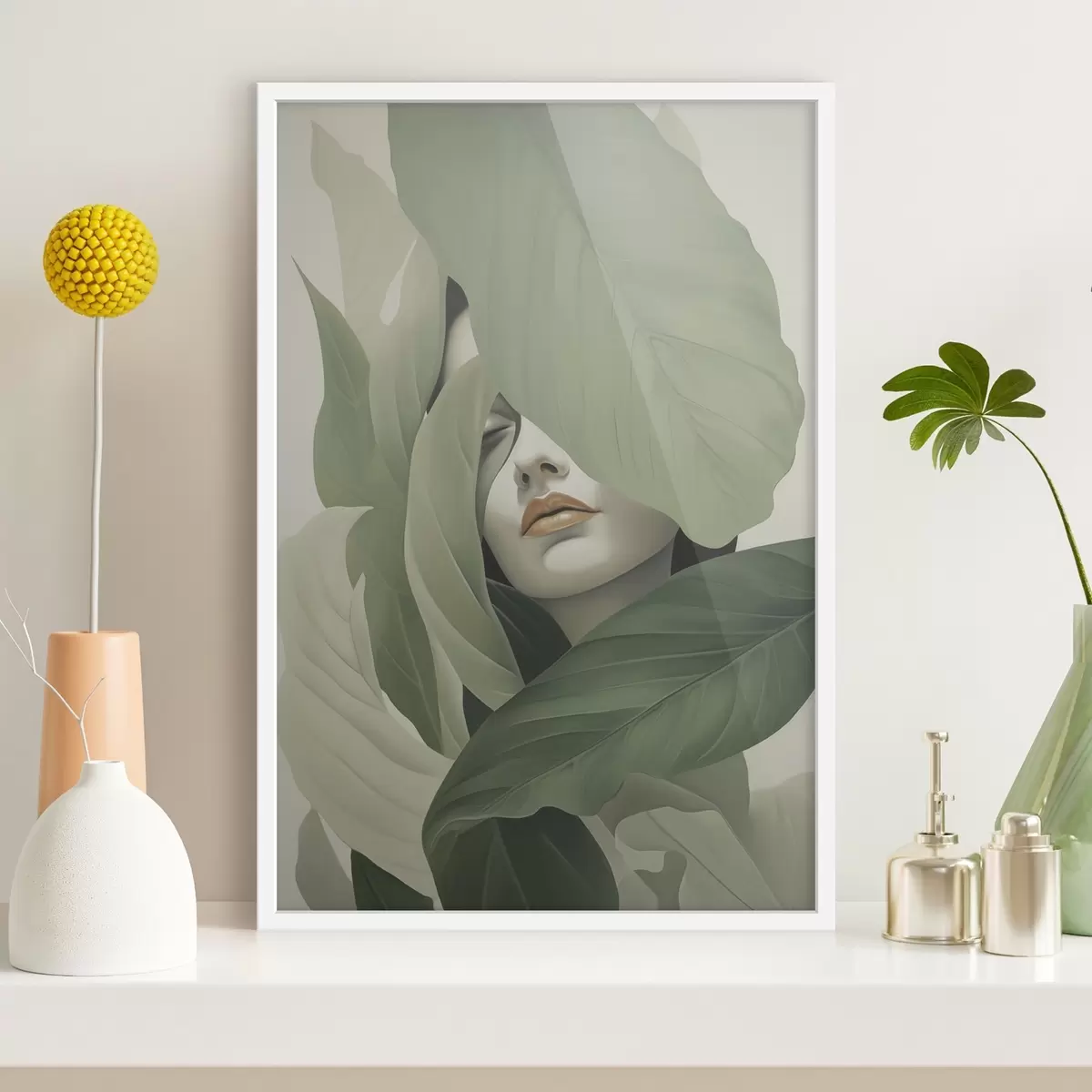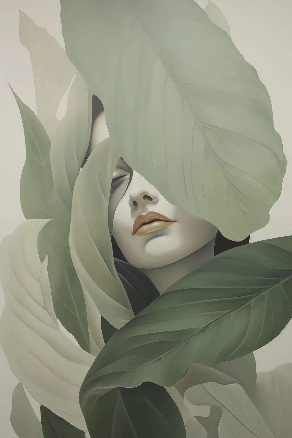 Plakat Sürrealistlik portree tüdrukust lehtedes f47332