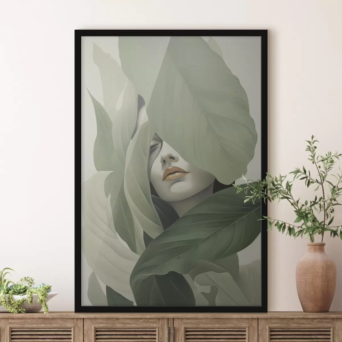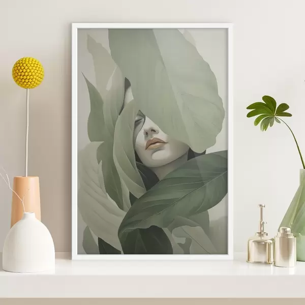 Poster Sürrealistlik portree tüdrukust lehtedes Nr f47332