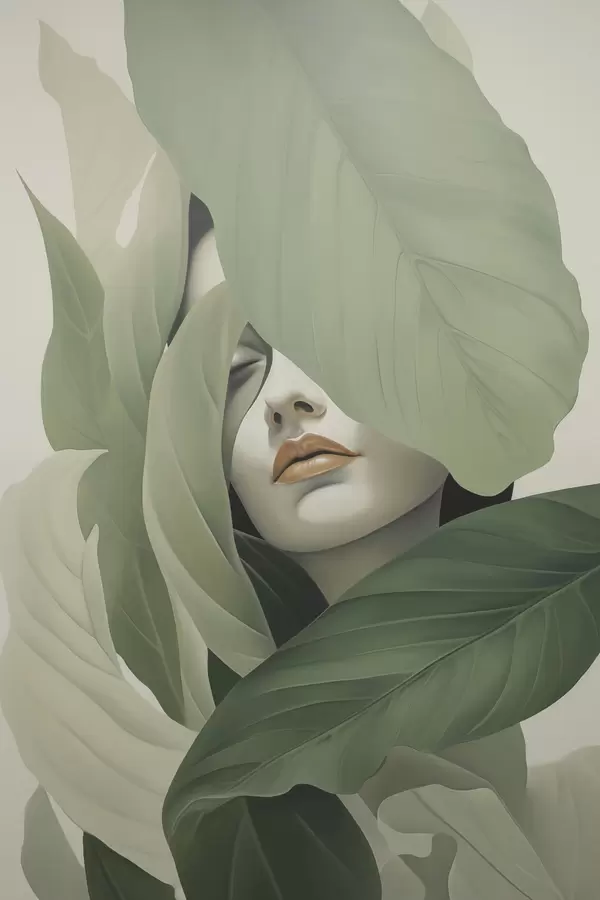 Poster Sürrealistlik portree tüdrukust lehtedes Nr f47332