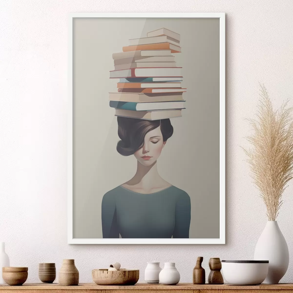 Plakat Sürrealistlik portree tüdrukust raamatutega f47334