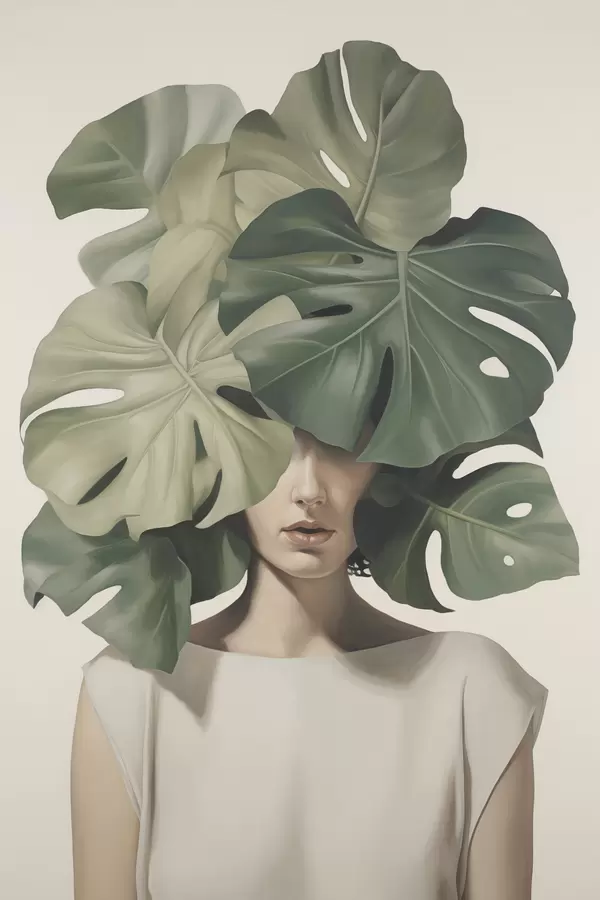 Poster Abstraktne portree tüdrukust monsteralehtedega Nr f47336