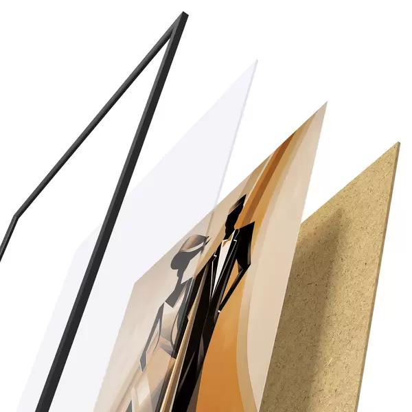 Plakat koosneb raamist, pleksiklaasist, trükitud pildist ja puitlaastplaadist alusplaadist. Tänu tagaküljel olevatele kinnitustele saab plakati kohe seinale riputada.